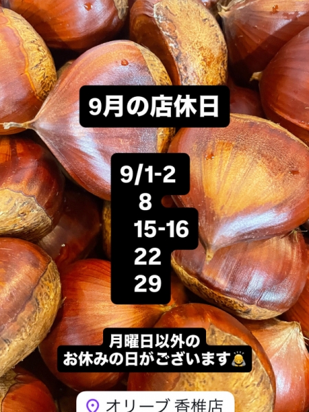 オステリア・ド・イタリア オリーブ 9月の店休日のおしらせ